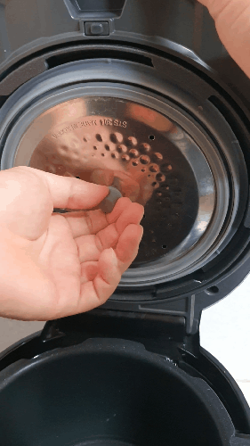 디스크에 붙은 고무패킹 사이도 잔재가 많이 끼입니다. 내부 밥솥은 많이 꺼내보셨죠? 꺼내어 줍니다. 마지막으로 후면부에 있는 응축수 받아주는 통을 꺼내줍니다.