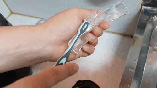 후면 물통의 경우 좁아서 수세미가 잘 안들어갑니다. 이럴 땐 쓰던 칫솔을 바꾸는 김에 하나 꺼내어 사용해 줍니다.