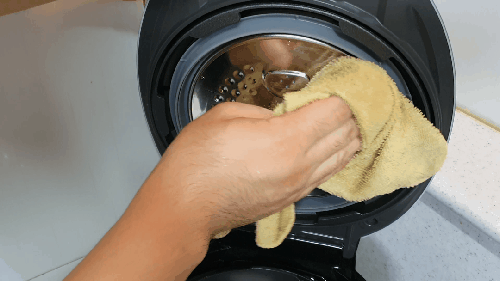 마른행주로 상판을 닦아 주고 고무패킹 구석구석 한번 닦아 줍니다.