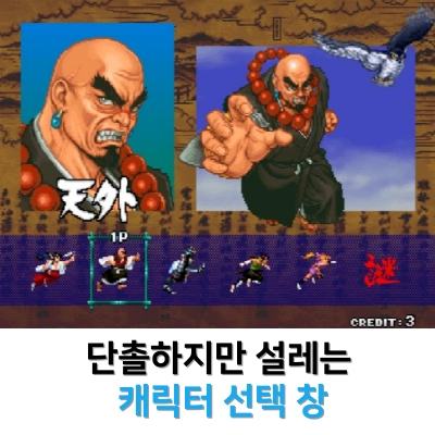 히든 캐릭터 뽑는 방법은 이렇습니다. 위위위 아래아래아래 위위위위위위위. ㅋㅋ 정신없으시죠? 캐릭터 선택 창에서 물음표(랜덤 선택)로 선택하고 선택하지 않고 위(세 번) 아래(세 번) 위(일곱 번) 하면 짠 하고 나타납니다. 이거 쎄요. 한 번 해 보세요.