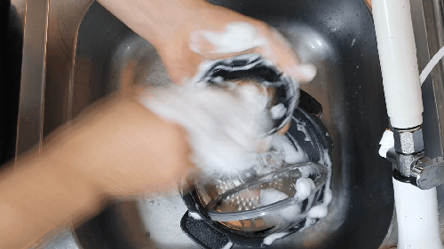 청소하실 때 반드시 수세미의 부드러운 면으로만 씼어주세요. 거친 수세미로 밀어버리면 내부 코팅이 다 벗겨져서 나중에 설거지가 매우 힘들어집니다. 매우...