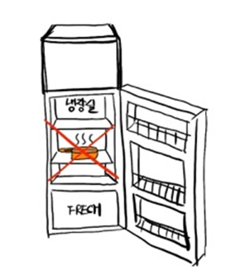 뜨거운 것은 냉장고에 절대 넣지 마세요
