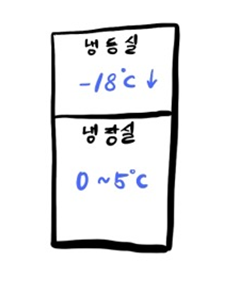 적정 냉장 온도는 0~5℃, 냉동 온도는 -18℃ 이하