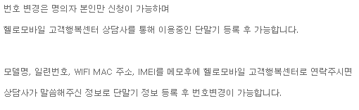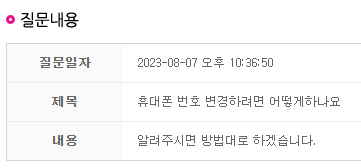 휴대폰 번호 및 개인정보가 유출돼서 휴대폰 번호를 바꿔야 하는데, 통신 3사와는 달리 홈페이지에서 바로 바꿀 수가 없었습니다. 그래서 문의를 하게 됐습니다.