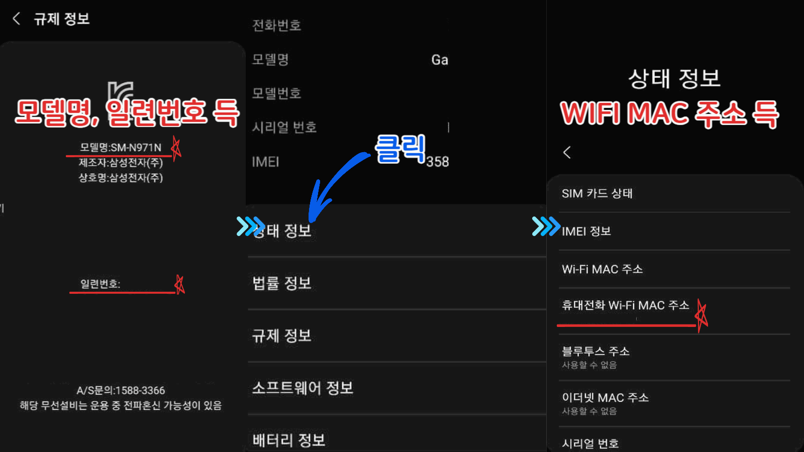 5. 모델명, 일련번호가 나옵니다. 메모해 줍니다.