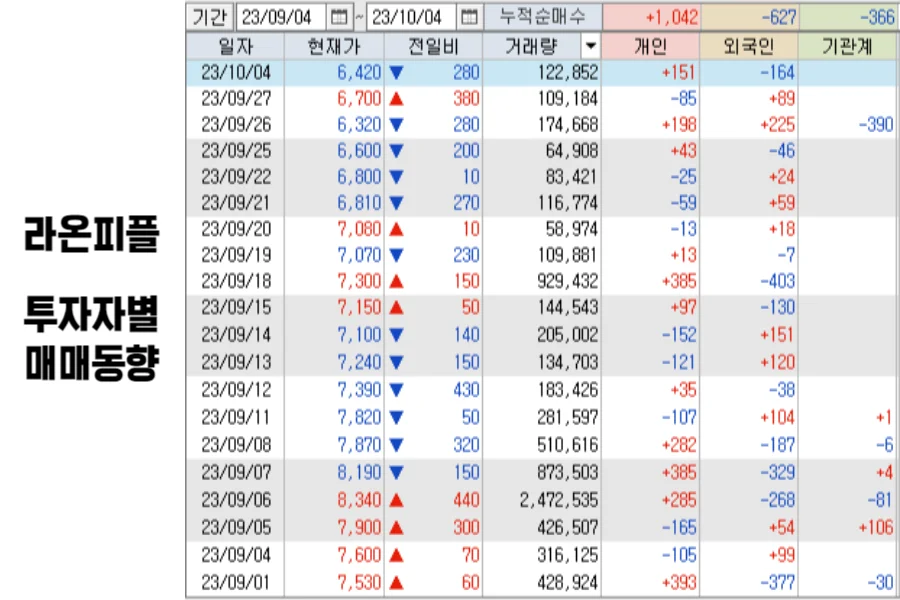 재밌게도 전체적인 차트 플로우는 다른 차트와 비슷하게 흘러가는 듯하나 투자자가 아직 개인이 많은 형태를 보이며 외인, 기관 등 특별한 매집은 보이지 않습니다. 다른 차트에 비해 AI 테마로 영향은 조금 약해 보입니다만, 주력 사업 또한 AI를 중심에 두고 있기에 충분히 테마주 분류로 가능합니다.