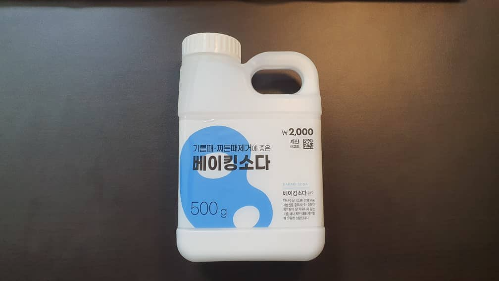 1. 제거하고 싶은 곳에 베이킹소다를 소량 붓고 수세미로 닦아줍니다.