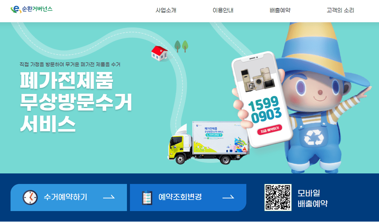 별도 비용 지불 없이 수거 기사님이 직접 댁까지 방문드려서 폐가전제품을 수거하는 서비스입니다.